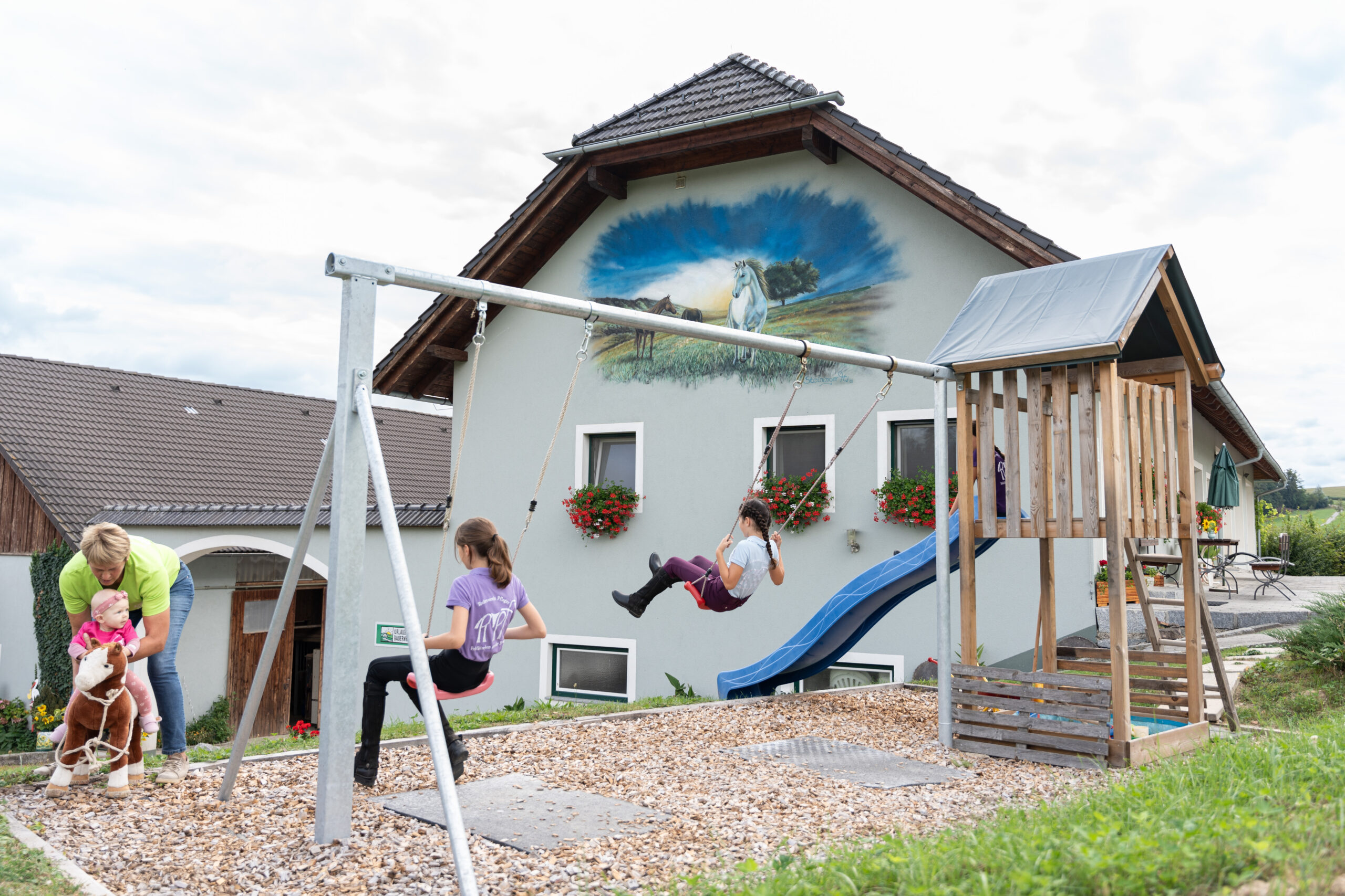 In der sonnig ruhigen Lage befinden wir uns ca. 5km vom Ortskern Feldkirchen an der Donau entfernt. Unser Familienbetrieb umfasst einen Einstellbetrieb für Pferde und Urlaub am Bauernhof, wobei man hier auch seinen Urlaub mit Pferd verbringen kann. Wanderreiter sind auch auf ihrer Durchzugsstrecke jederzeit willkommen. Ideal für Kinder und Erwachsene die Pferdeluft schnuppern wollen.